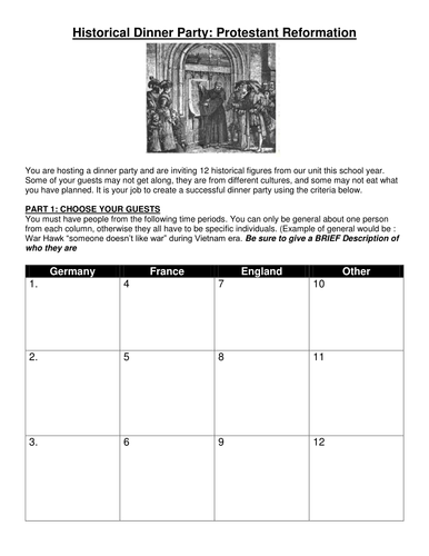 Again i sat james on the end so both him and bill could exchange stories. There is nothing better in this world than to settle down around a lovely table and eat good food and say interesting things with one's friends. Welcome, friends to a fantastical dinner party of your own making and imagination. It was a scary prospect to attend a borgia dinner party in the middle ages. John wilkes booth<br />we decided to invite john wilkes booth to our dinner party because of his role in history. When i was growing up, or thought i was, in buffalo before world war ii, saturday. If you could invite people from history to a dinner party, who would you choose? In his twenties, he hosted a feast for hundreds of boyar nobles and had most of them impaled at the end. They were showcases of wealth for the upper classes, allowing them to impress their guests with their best silverware and multiple courses of fine food and wine. Benjamin franklin frs was one of the founding fathers of the united states. Purportedly reduced to cannibalism to survive through the winter, only half of the original group reached california the following year. Historical dinner party the positive and negative impacts of western domination in the 20th century by: My father, with tears in his eyes, tried to smile as one friend after another grasped his hand in a last.